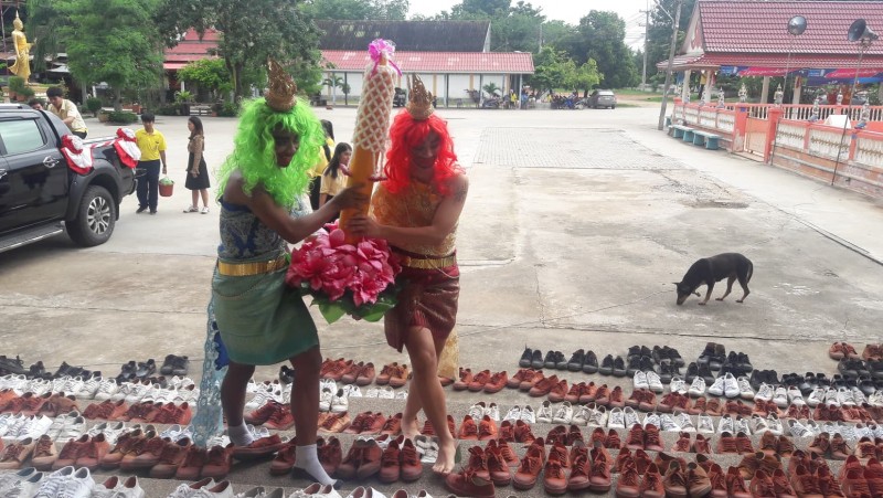 ไปถวายชาวบ้านมักจัดขบวนแห่กันอย่างเอิกเกริกสนุกสนานและปฏิบัติสืบทอดกันมาจนกลายเป็นประเพณี |