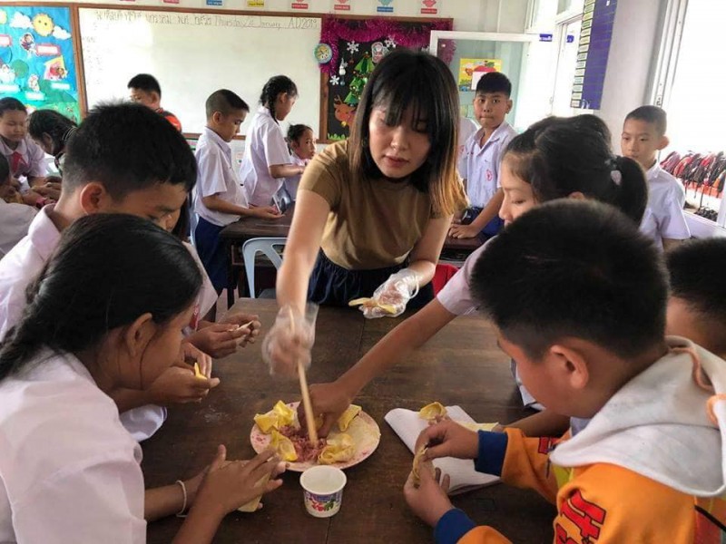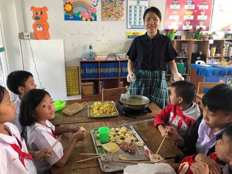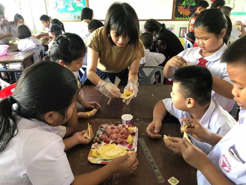 วันที่ 24 ม.ค. 2562 เหล่าซือ สอนนักเรียนทำเกี๊ยวเนื่องในเทศกาลตรุจีน