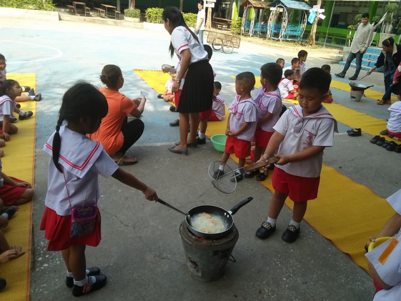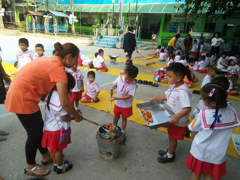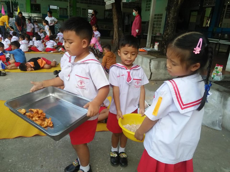 วันที่ 7 ม.ค. 2562 อนุบาล 2 ฝึกทำอาหาร วันนี้มาในเมนูไก่ชุปแป้งทอด