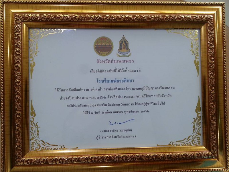 ประจำปีงบประมาณ พ.ศ. 2562 ด้านศิลปะการแสดง "ดนตรีไทย"ระดับจังหวัดกำแพงเพชร