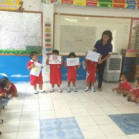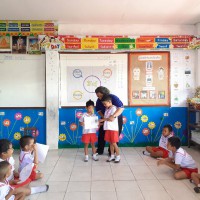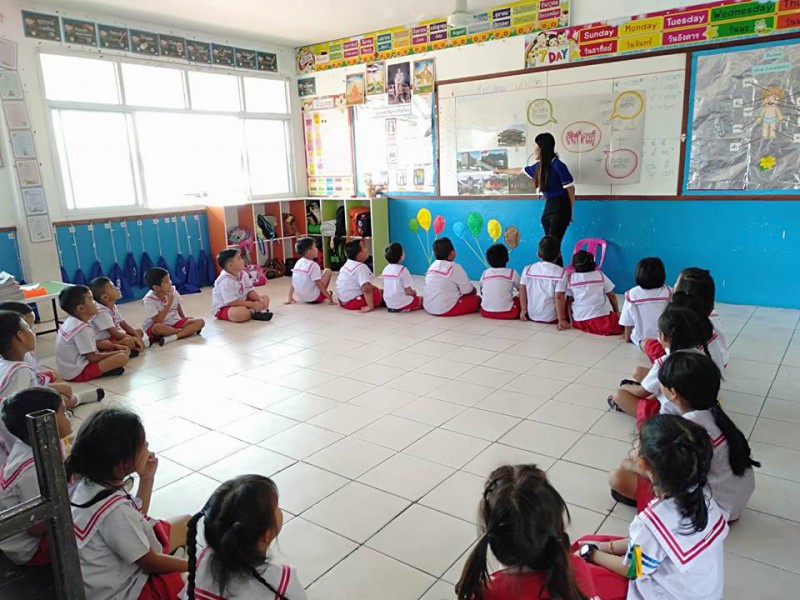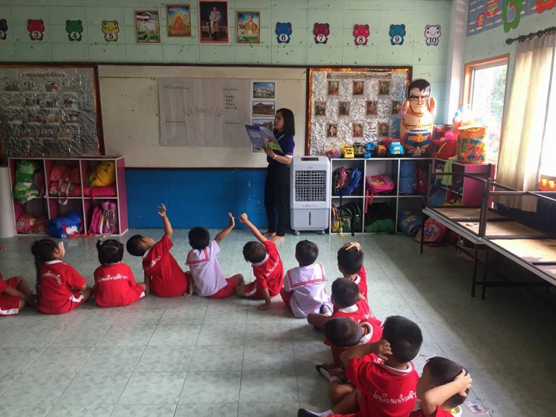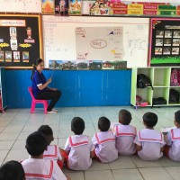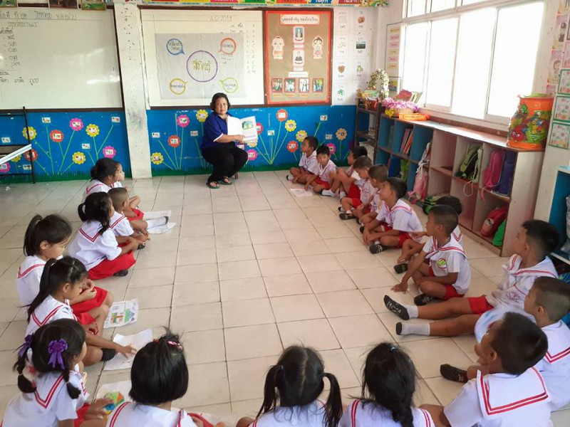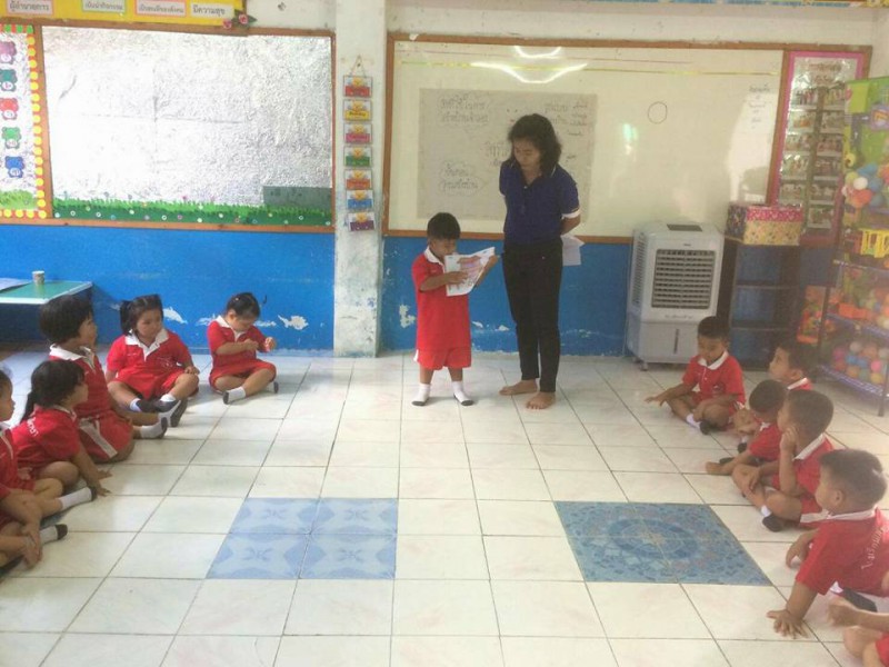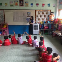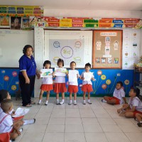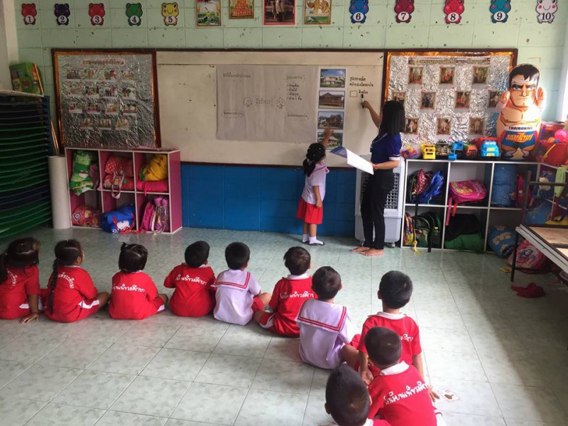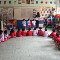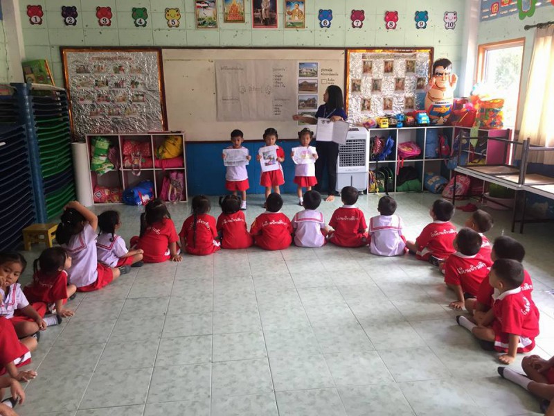จากนั้นแต่ละกลุ่มก็จะช่วยกันวาดภาพบ้านท้าน้ำท่วมและนำเสนอผลงานหน้าชั้นเรียน