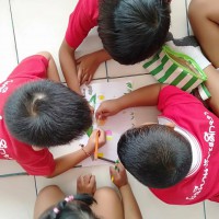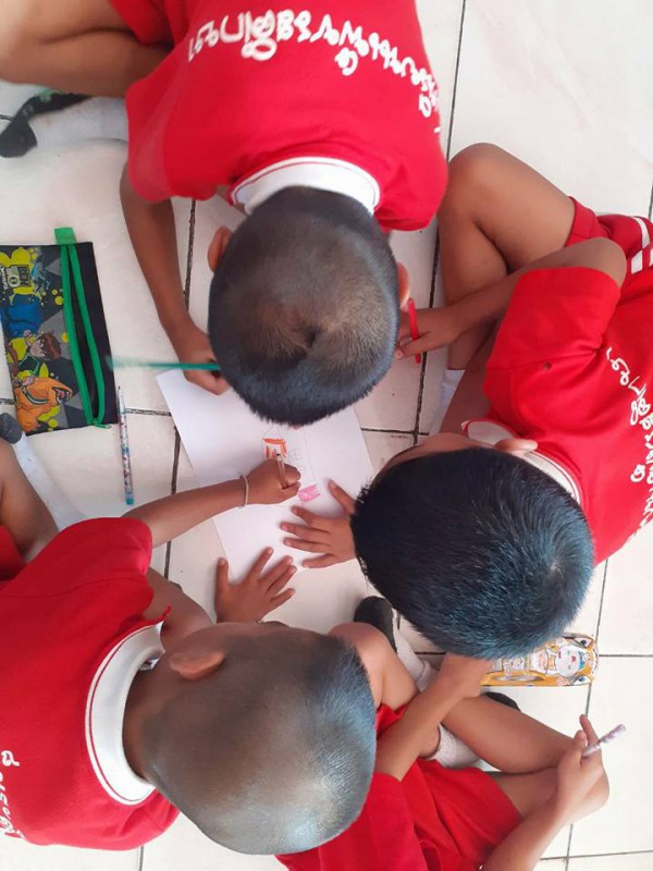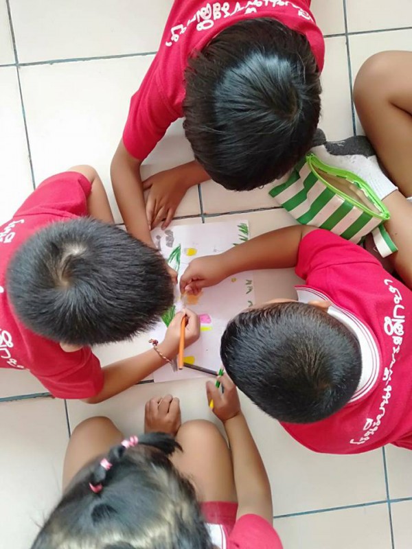 จากนั้นแต่ละกลุ่มก็จะช่วยกันวาดภาพบ้านท้าน้ำท่วมและนำเสนอผลงานหน้าชั้นเรียน