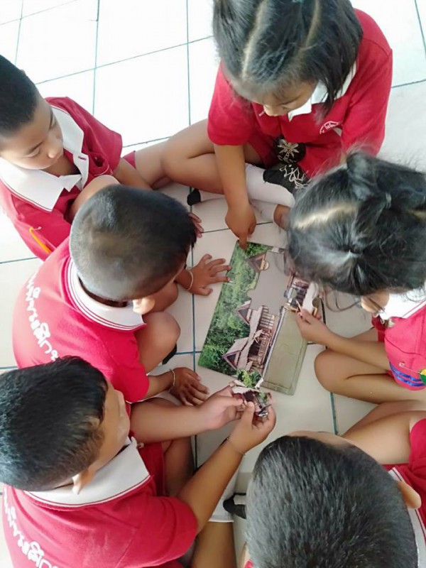 ทำ..กิจกรรม สำรวจหาแบบบ้านท้าน้ำท่วม โดยมีกิจกรรมให้นักเรียนได้เล่นเกมภาพตัดต่อ