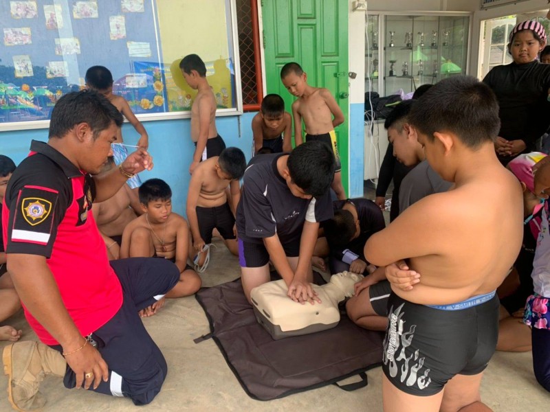 วันที่ 28 กันยายน 63 การอบรมโครงการเสริมสร้างทักษะการว่ายน้ำเพื่อเอาชีวิตรอด (Life Saving)