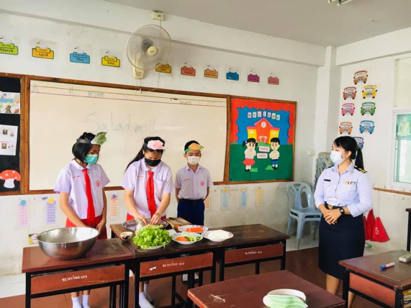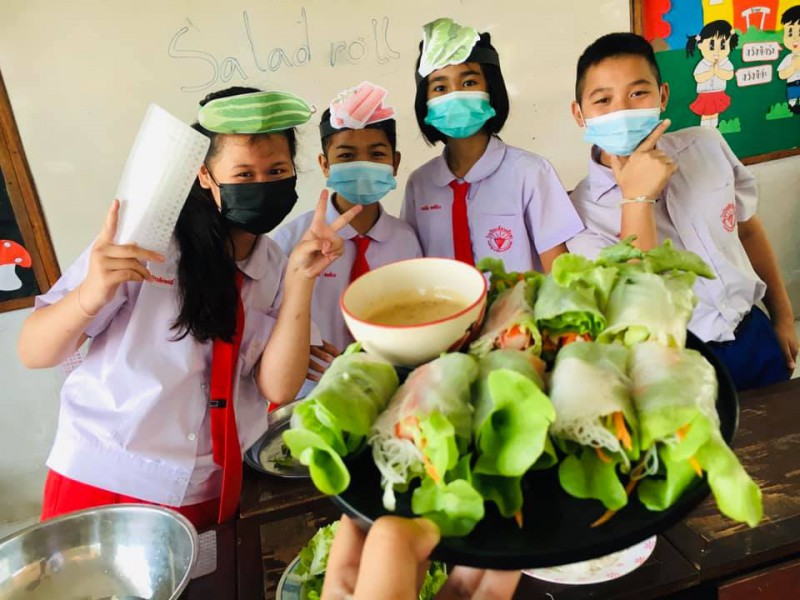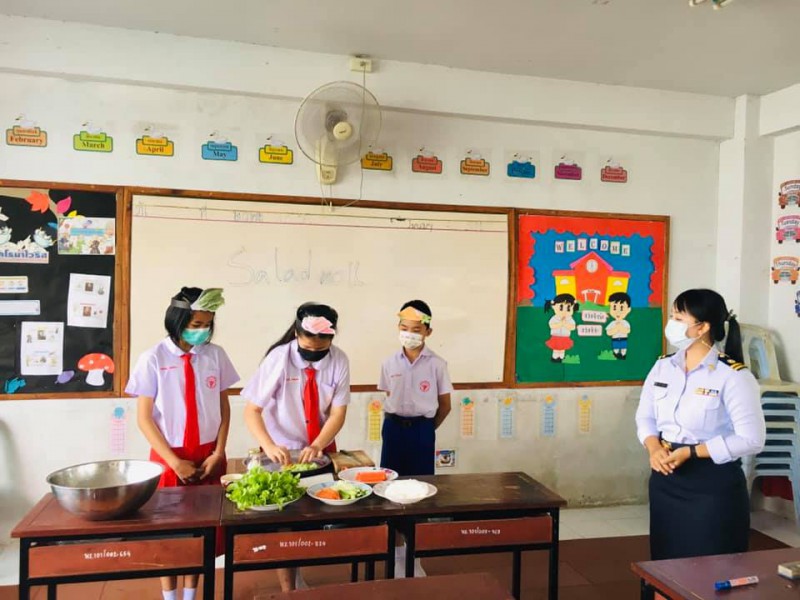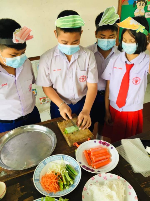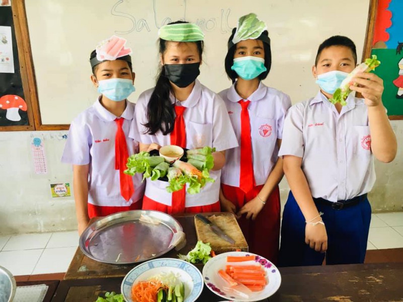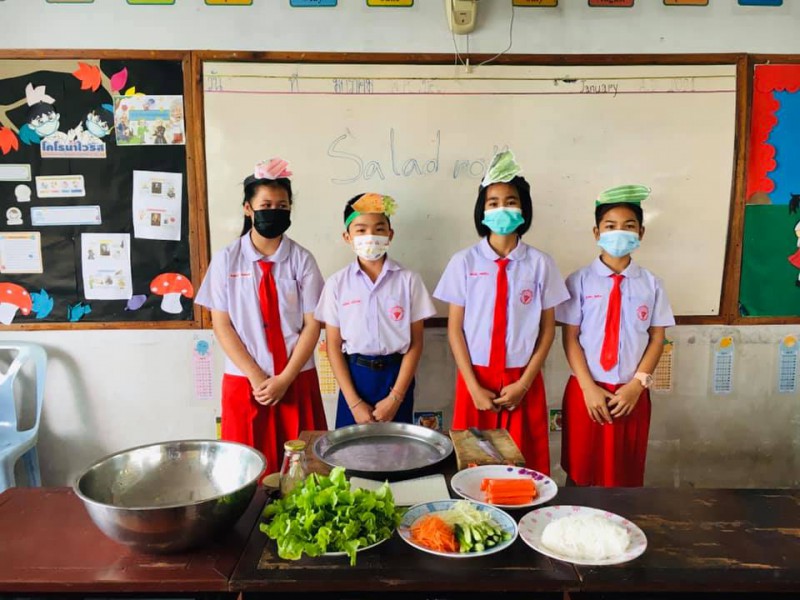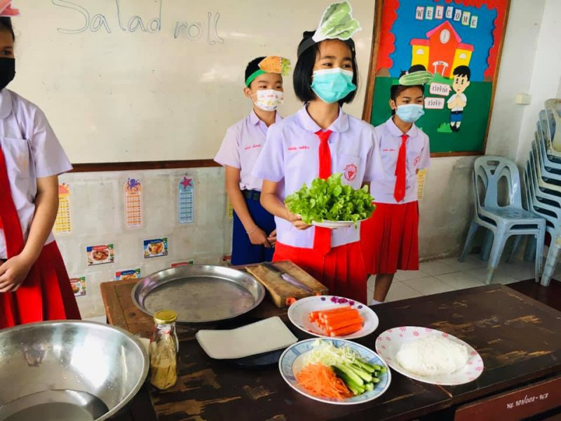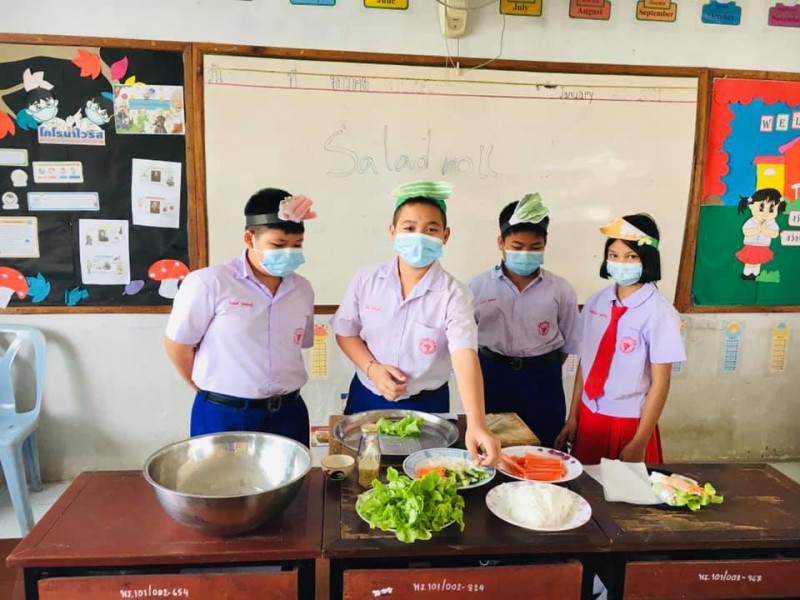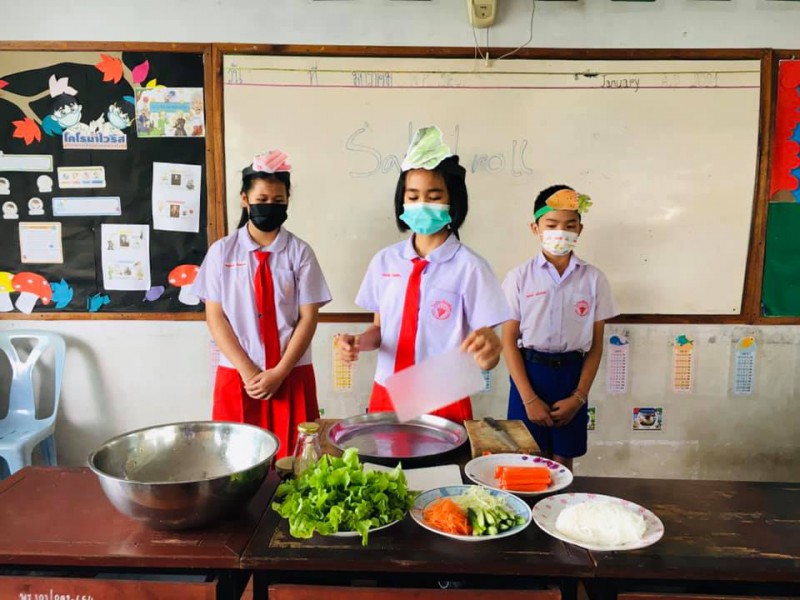 8 มกราคม 64 กิจกรรมการเรียนรู้เรื่อง Healthy food with salad rollประถมศึกษาปีที่ 51