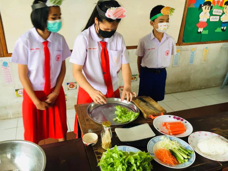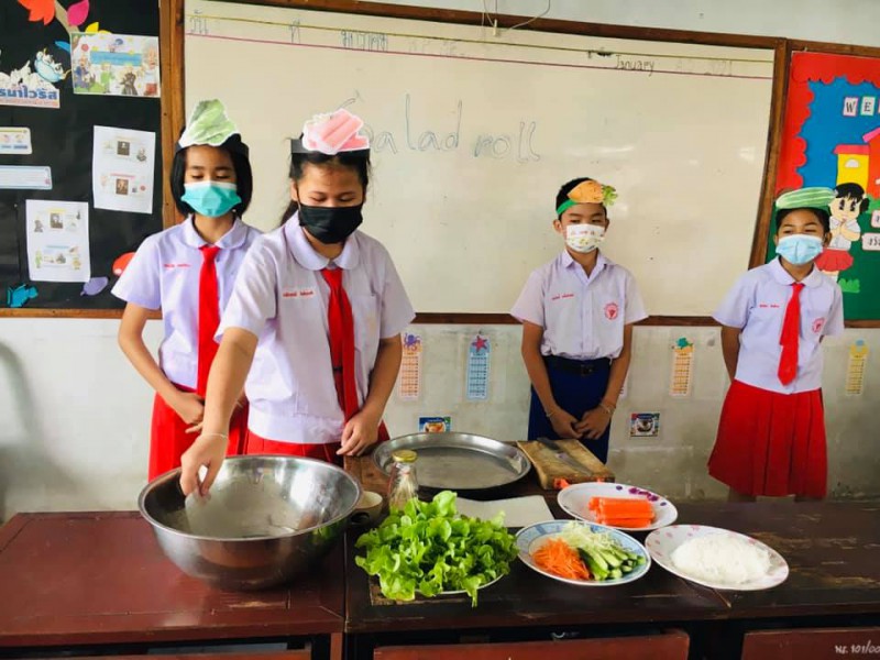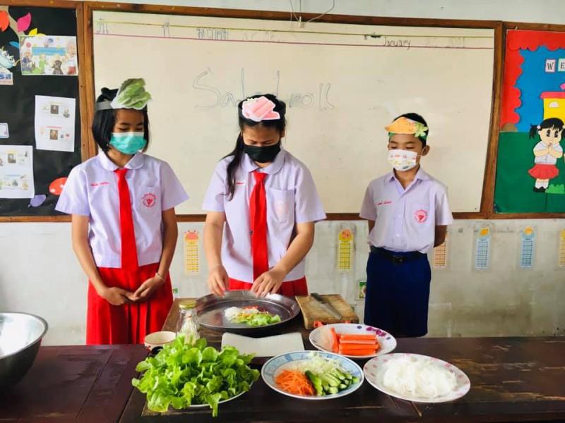 8 มกราคม 64 กิจกรรมการเรียนรู้เรื่อง Healthy food with salad rollประถมศึกษาปีที่ 51