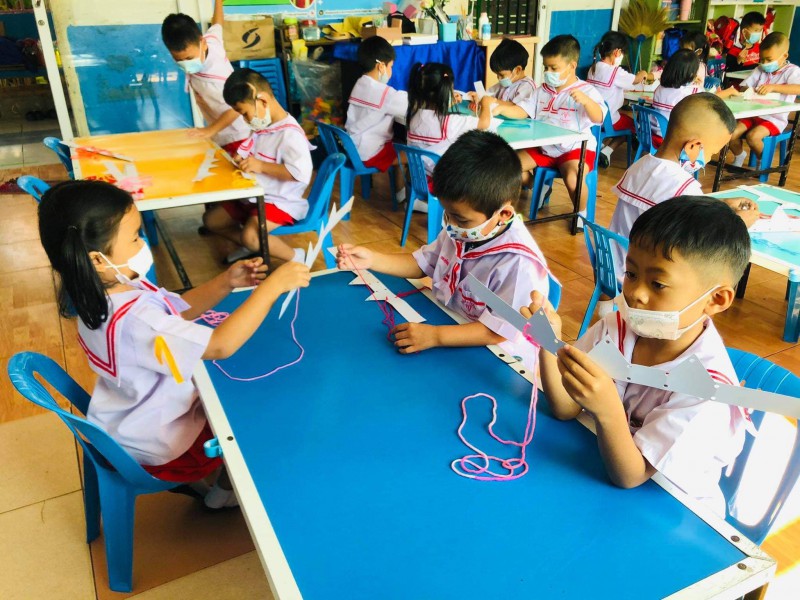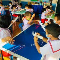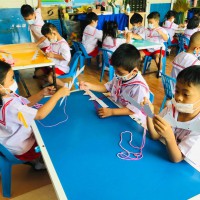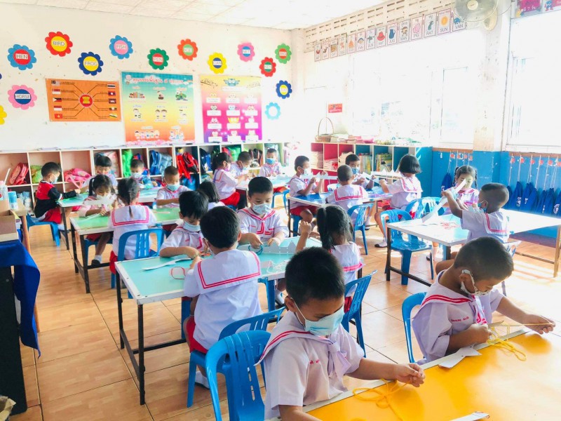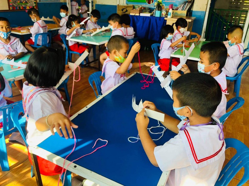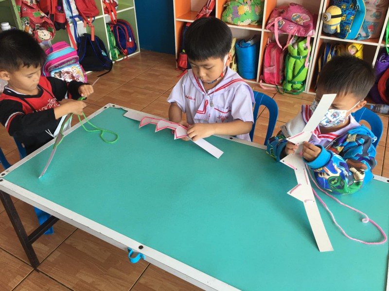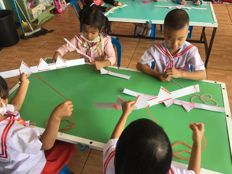 แนวทางการจัดกิจกรรม : การจัดกิจกรรมร้อยเชือกมงกุฎ เป็นการฝึกทักษะกล้ามเนื้อมัดเล็กในส่วนของการควบคุมมือนิ้วมือ ให้เชื่อมโยงกับสายตา สามารถช่วยฝึกสมาธิ การสังเกต การจดจำ และเสริมสร้างจินตนาการ ช่วยจูงใจให้เด็กๆ มความกระตือรือร้นในการปฏิบัติกิจกรรมทักษะที่เด็ก ๆได้รับ : ทักษะด้านกล้ามเนื้อมัดเล็ก การฝึกประสาทสัมพันธ์ระหว่างมือกับตา และช่วยให้เด็กมีสมาธิมากยิ่งขึ้น