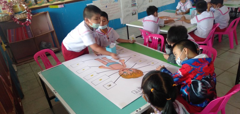 ทักษะที่นักเรียนได้รับ : ทักษะการพูดคำศัพท์ ทักษะการสังเกต และทักษะการทำงานร่วมกัน