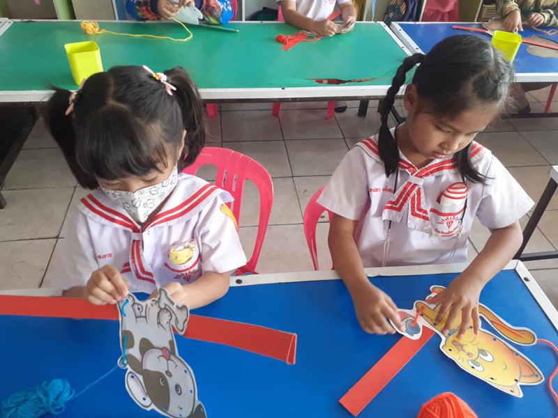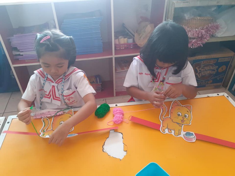 แนวทางการจัดกิจกรรม : การร้อยเชือกส่วนต่างๆของรูปสัตว์การจัดกิจกรรมพัฒนาการกล้ามเนื้อเล็กมีความสำคัญเป็นอย่างยิ่ง ต่อการส่งเสริมพัฒนาการทักษะที่เด็กๆได้รับ : ส่งเสริมการทำงานพัฒนาการกล้ามเนื้อมือและตาให้ทำงานสัมพันธ์กัน ยังช่วยให้เด็กมีสมาธิมากยิ่งขึ้น