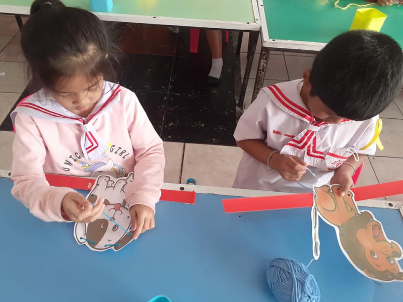 กิจกรรมการเรียนรู้เรื่อง : ร้อยเชือกส่วนต่างๆของรูปสัตว์