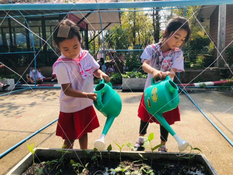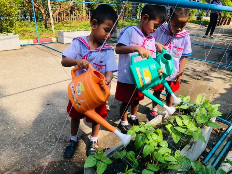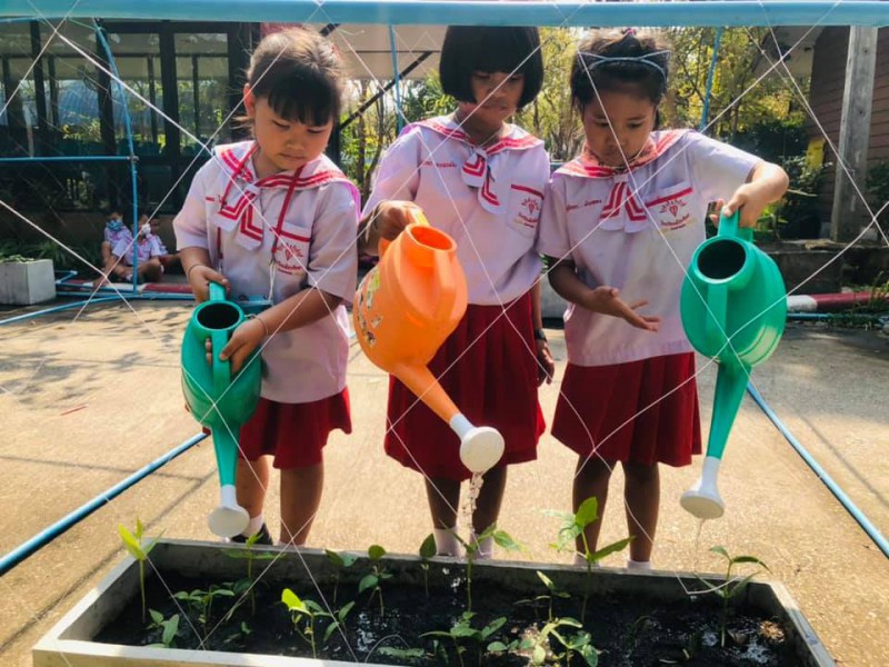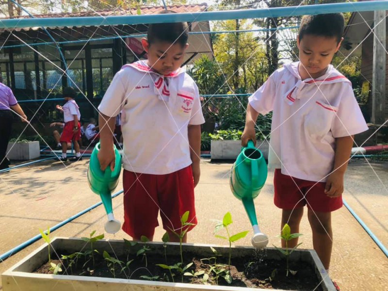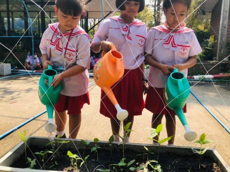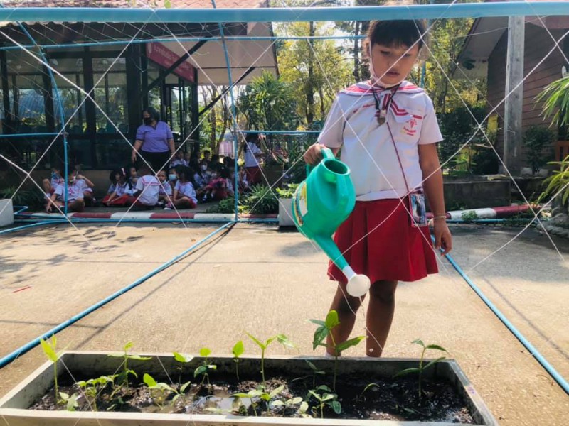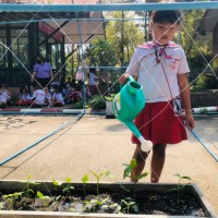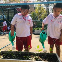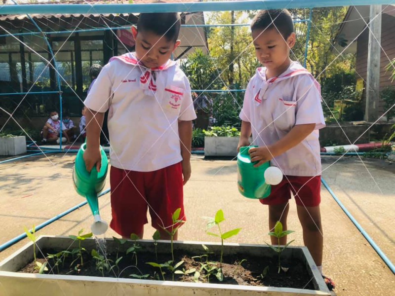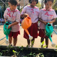 เนื่องจากในสัปดาห์ที่แล้ว นักเรียนนำเมล็ด แตงกวากับถั่วฝักยาวไปปลูก และปรับสภาพหน้าดิน และใส่ปุ๋ยลงไป ถัดมาหนึ่งสัปดาห์ผักสวนครัวของนักเรียนเริ่มเจริญเติมโตพ้นดินออกมาลำต้นเริ่มยาวขึ้นเรื่อยๆ นักเรียนรดน้ำทุกวันและสังเกตการเจริญเติบโตของผักสวนครัวที่นักเรียนได้ปลูกไว้