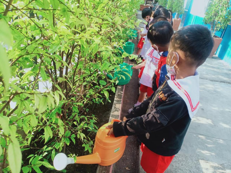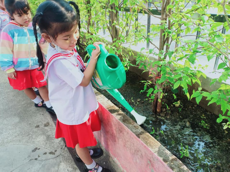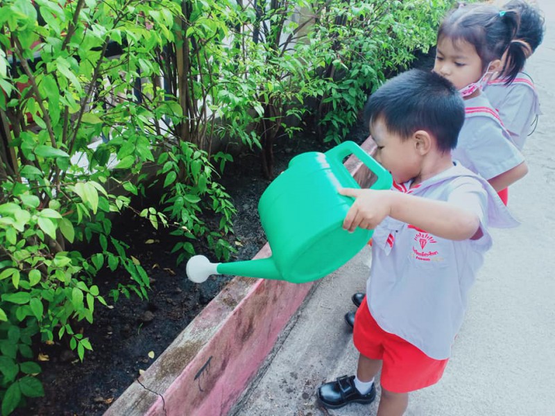 นักเรียนแบ่งกลุ่มกันรดน้ำต้นแตงกวาในแต่ละวัน ทำการสังเกตการเจริญเติบโตของต้นแตงกวา ทั้งหมดใช้ระยะเวลา 9 วัน ตั้งแต่เริ่มปลูกต้นแตงกวาวันแรก ในวันนี้ต้นแตงกวาของนักเรียนมีการเจริญเติบโตขึ้น ความสูงประมาณ 10 - 11 เซนติเมตร นักเรียนสังเกตเห็นความเปลี่ยนแปลงของต้นแตงกวาทั้งความสูง และสีสันของใบที่มีสีเข้มขึ้นจากวันแรกๆที่ทำการสังเกตร่วมกัน