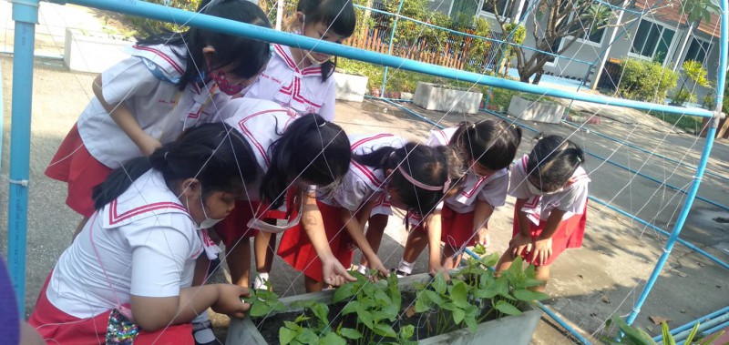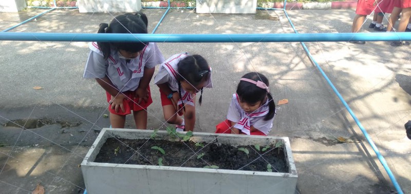 เนื่องจากสัปดาห์ที่แล้ว นักเรียนนำเมล็ด แตงกวากับถั่วฝักยาวไปปลูก และปรับสภาพหน้าดิน และใส่ปุ๋ยลงไป ถัดมาหนึ่งสัปดาห์ต้นถั่วและต้นแตงกวาเริ่มเจริญเติบโตออกมาลำต้นมีการเปลี่ยนแปลงยาวขึ้นเรื่อยๆ เริ่มใบเขียวและยาวขึ้นตามลำดับ ครูได้พานักเรียนไปสังเกตและรดน้ำทุกวันเพื่อเห็นการเปลี่ยนแปลงของผัก