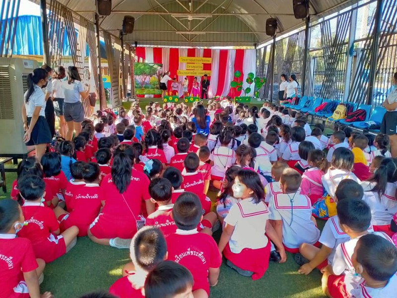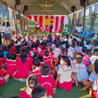ตัวแทนนักเรียนระดับชั้นอนุบาล 3 ได้แสดงความสามารถในการเล่านิทาน ให้เพื่อนๆและน้องๆระดับชั้นอนุบาล1และอนุบาล 2ได้ดูทำให้นักเรียนเกิดความสนใจในการฟังนิทานและมีความกล้าแสดงออกรู้จักทำงานร่วมกันเป็นทีมและมีความสามัคคีร่วมกัน