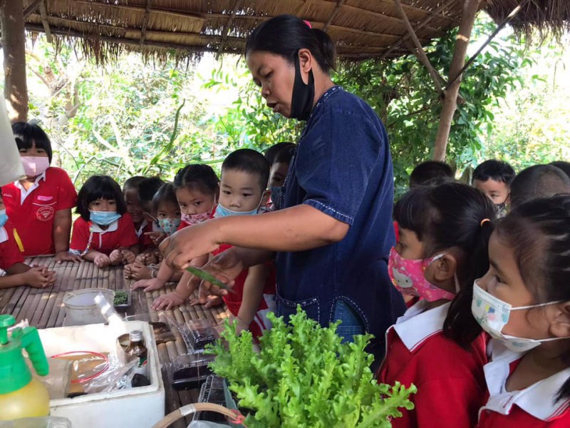 นักเรียนอนุบาล 2 ทัศนศึกษาแหล่งเรียนรู้เศรษฐกิจพอเพียง ‘’ ปลูกผัก เพราะรักพ่อ ‘’ ตำบลนครชุม