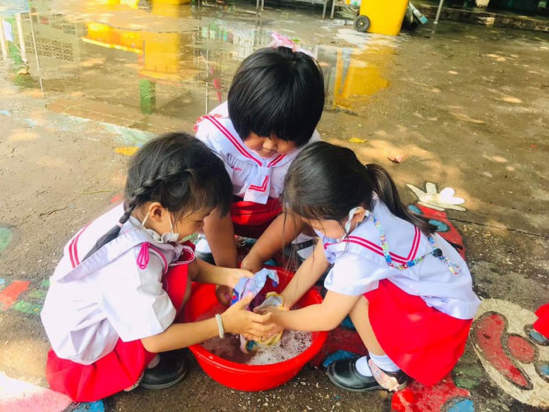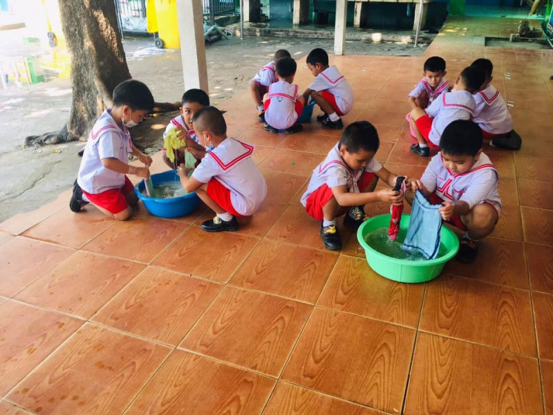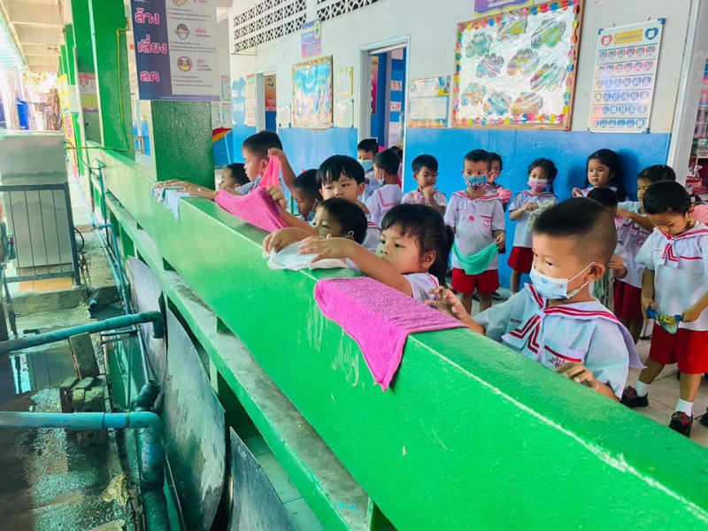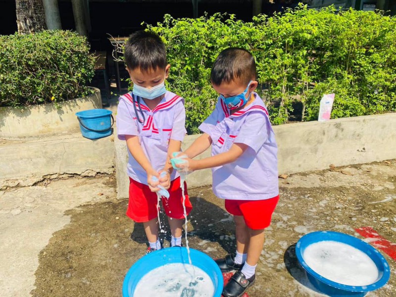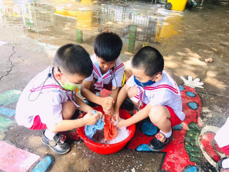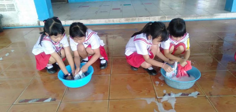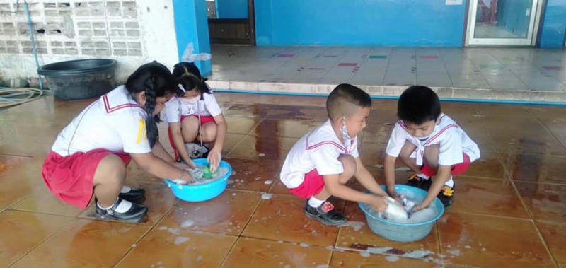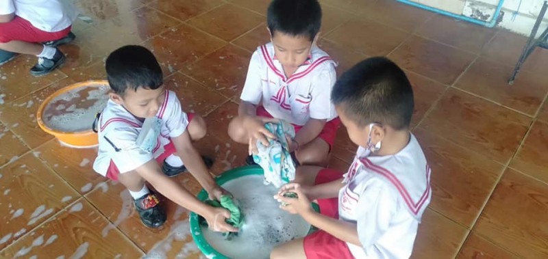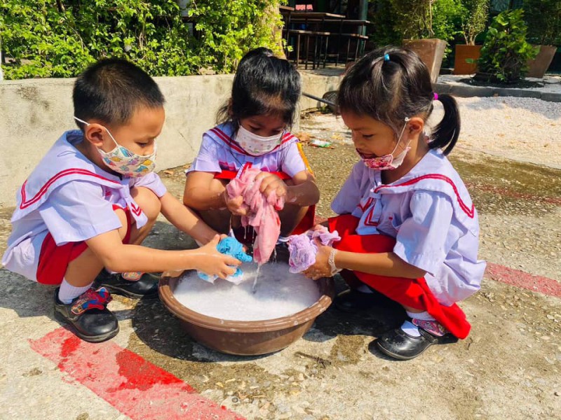 5 มี.ค. 64 กิจกรรมการเรียนรู้การชักผ้าด้วยตัวเอง ของระดับชั้นอนุบาล 1-3