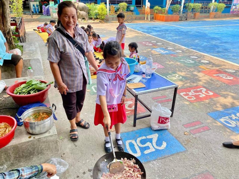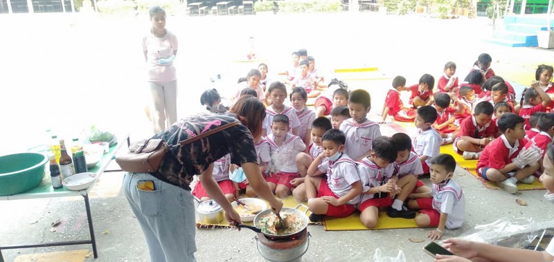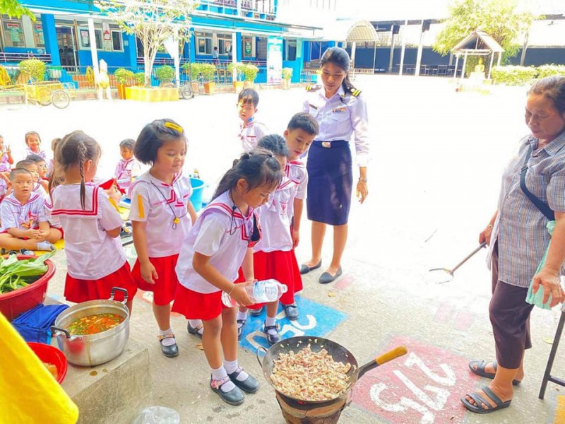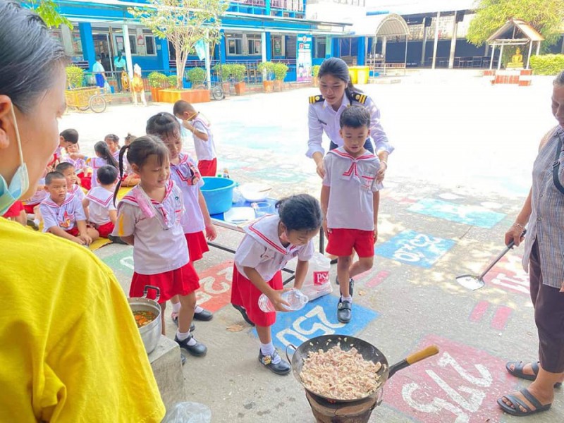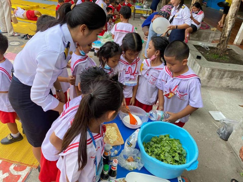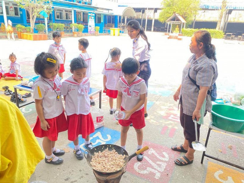 กิจกรรมประกอบอาหาร เมนูราดหน้าเส้นใหญ่ ของนักเรียนระดับชั้นอนุบาล 3