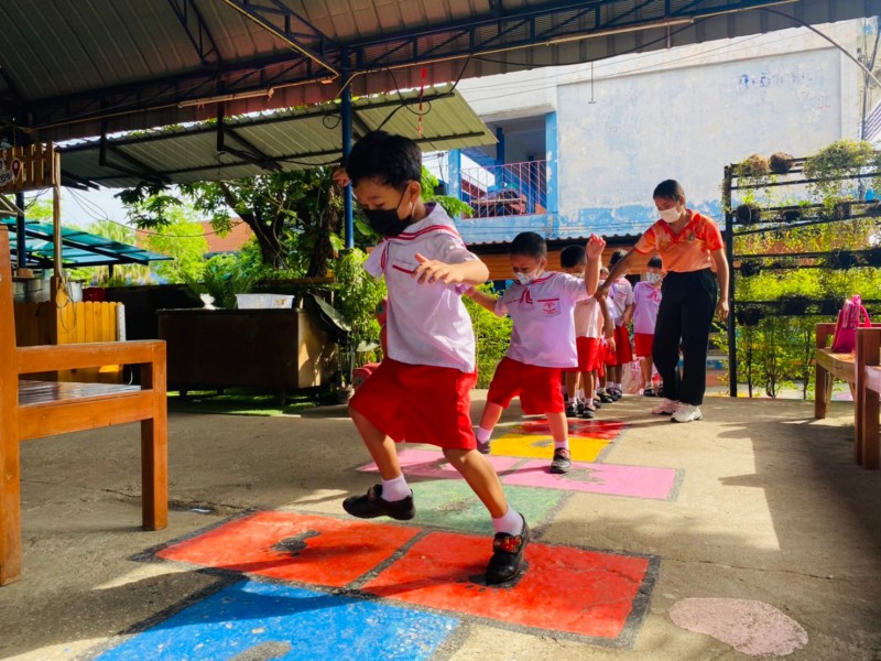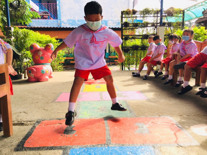 27 พ.ค. 65 กิจกรรมพัฒนาสมอง BBLฝึกการทรงตัว การเคลื่อนไหว และกล้ามเนื้อขา ของน้องๆระดับชั้นอนุบาล 3