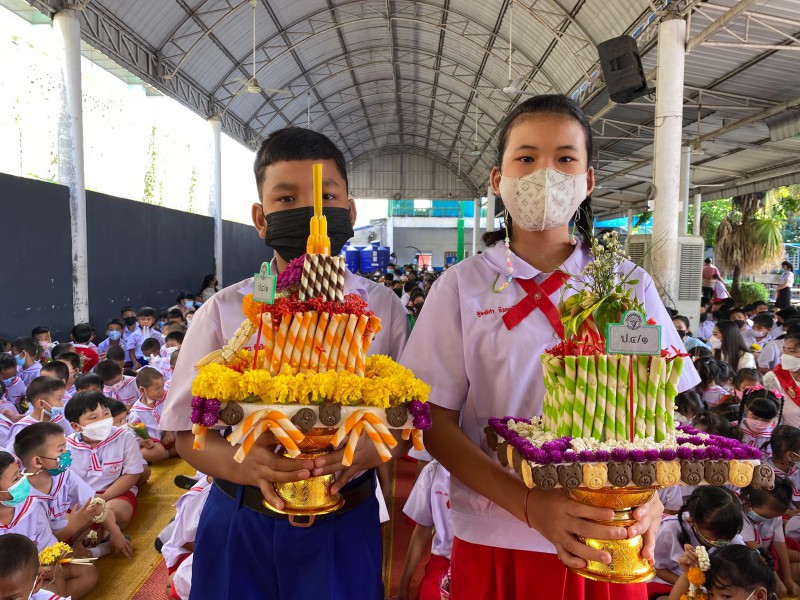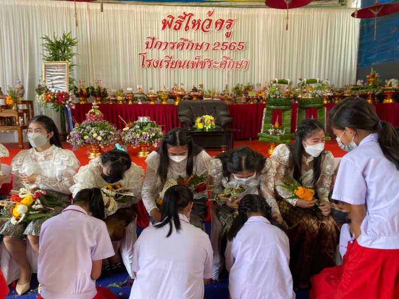 16 มิ.ย. 65 พิธีไหว้ครูระดับชั้นประถมเเละมัธยม ปีการศึกษา 2565