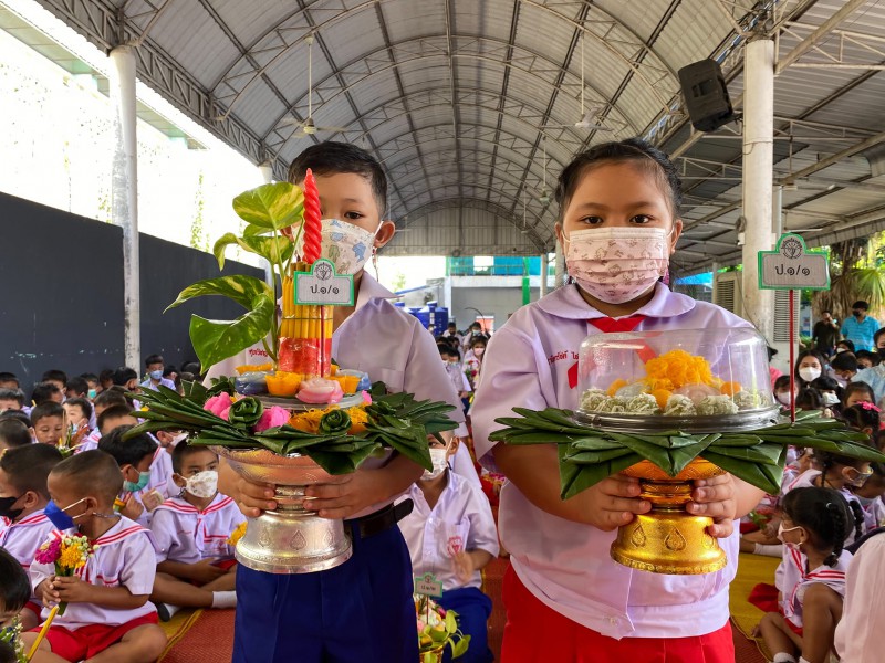 16 มิ.ย. 65 พิธีไหว้ครูระดับชั้นประถมเเละมัธยม ปีการศึกษา 2565