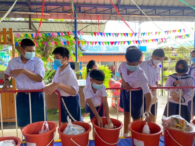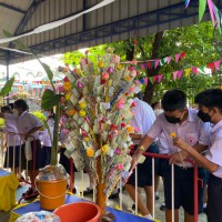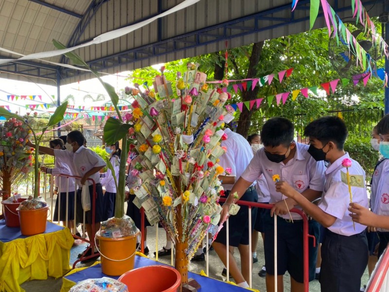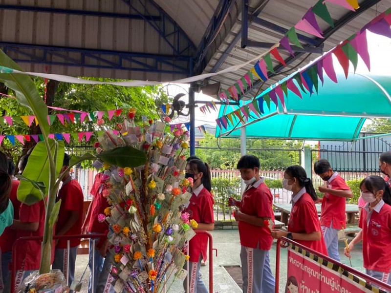 5 ก.ค. 65 นักเรียนร่วมทำบุญ ข้าวสารอาหารแห้ง เทียน และปัจจัยต่างๆ เนื่องในวันเข้าพรรษา