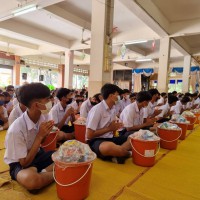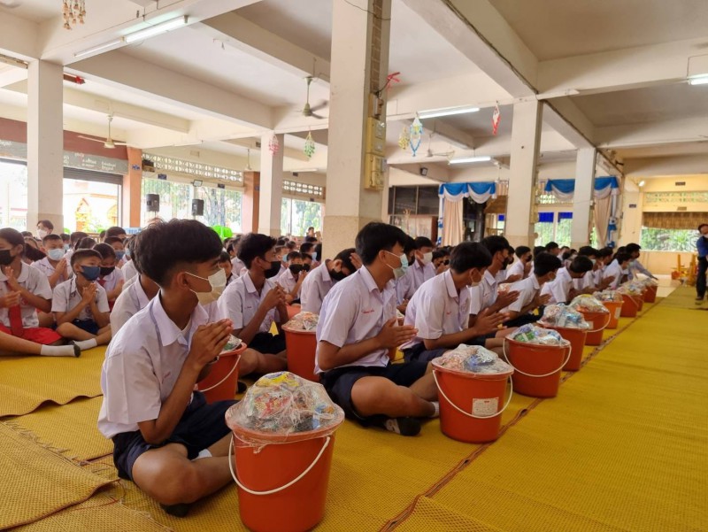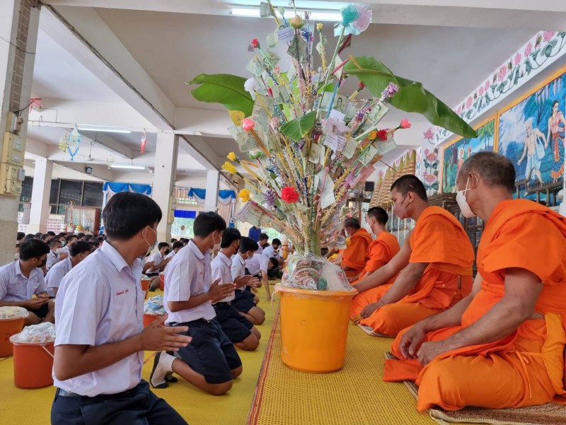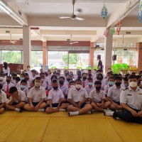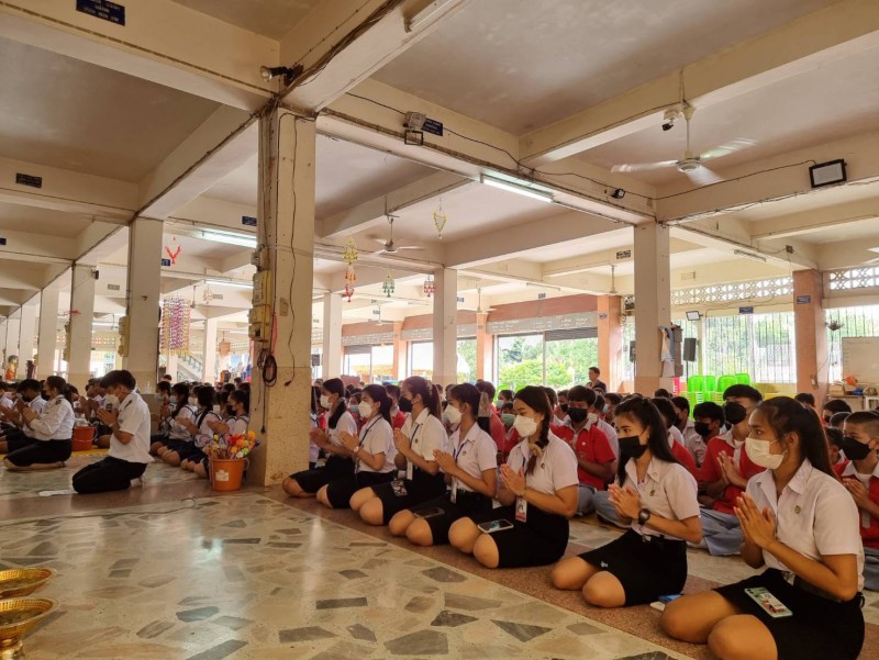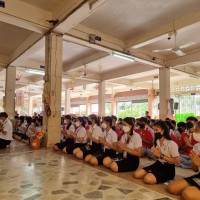 ท่านผู้อำนวยการคณะครูและนักเรียน ร่วมถวายเทียนจำนำพรรษาเนื่องในวันเข้าพรรษา