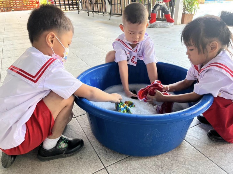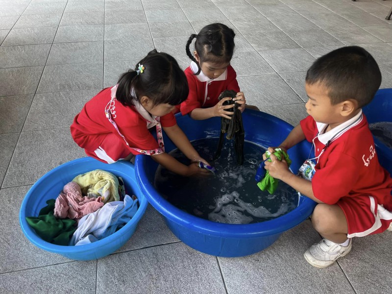 31 มกราคม 66 กิจกรรม การเรียนรู้ด้วยตนเองซักผ้า นักเรียนระดับชั้นอนุบาล 1