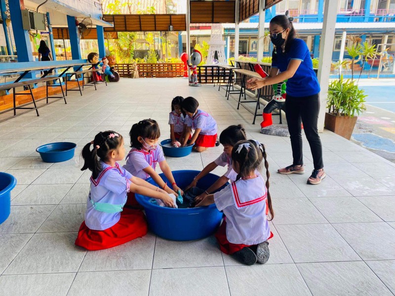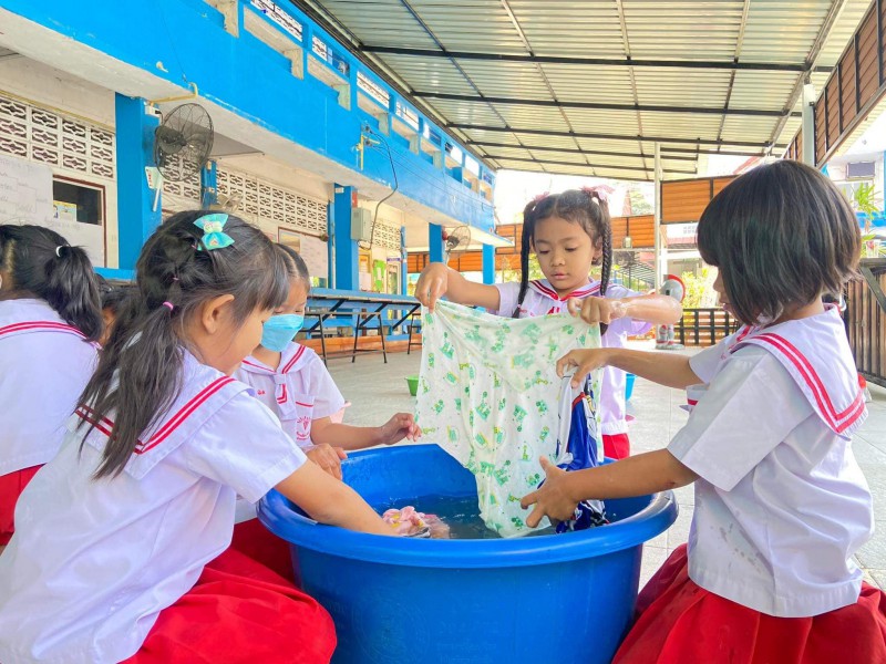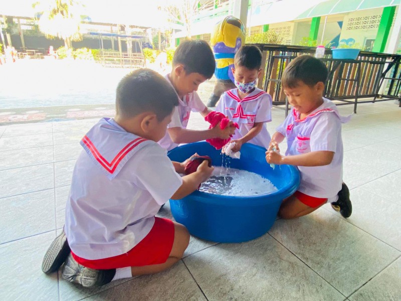 31 มกราคม 66 กิจกรรม หนูน้อยรักสะอาด ซักผ้าขาวด้วยมือเรา นักเรียนระดับชั้นอนุบาล 3