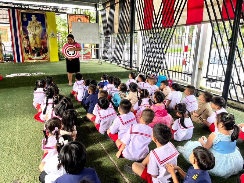 15 พฤศจิกายน 2566 ระดับชั้นอนุบาล 2 เรียนรู้เรื่องกฏและเครื่องหมายจราจ