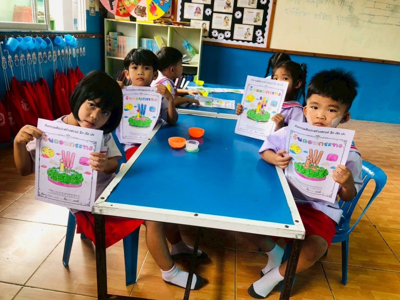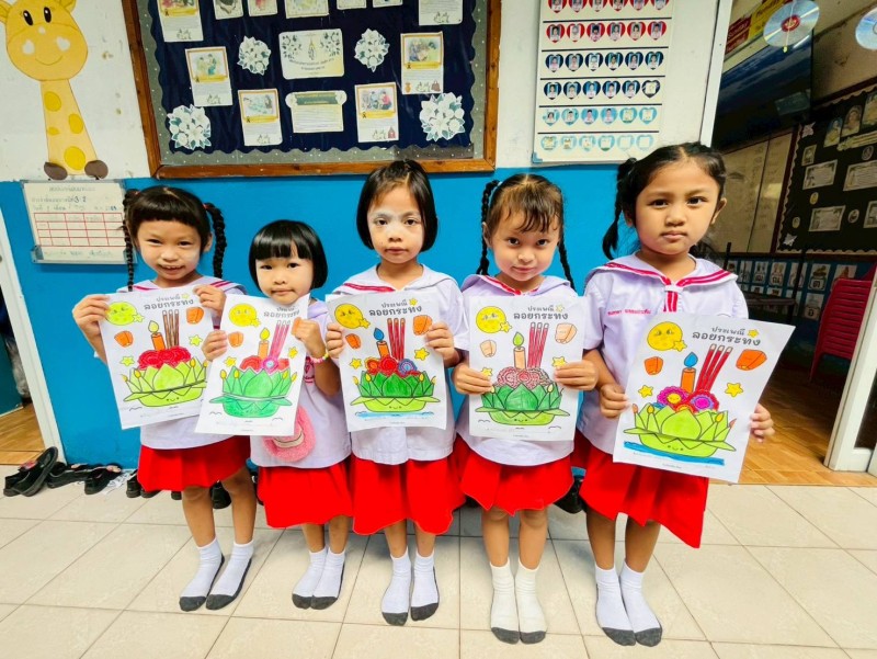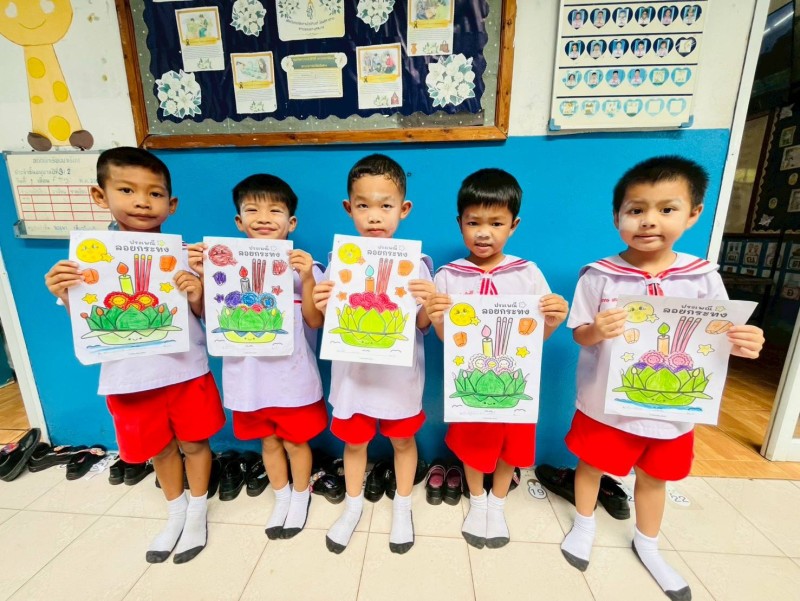 5 พฤศจิกายน 68 กิจกรรมทำสื่อใบงานเนื่องในประเพณีวันลอยกระทง ชั้นอนุบาล