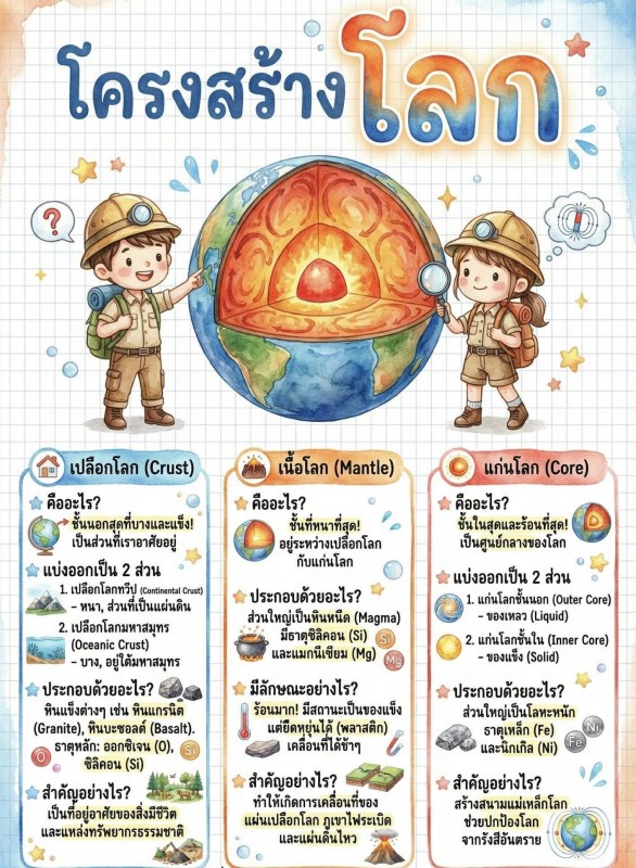 21 ม.ค. 69 เรื่อง โครงสร้างของโลก วิชาวิทยาศาสตร์ ระดับชั้นมัธยมศึกษาปีที่ 2