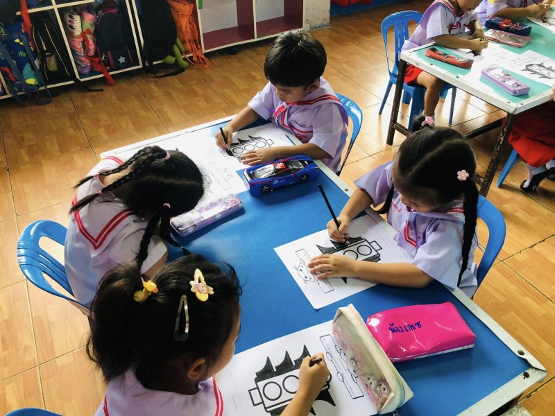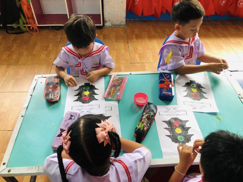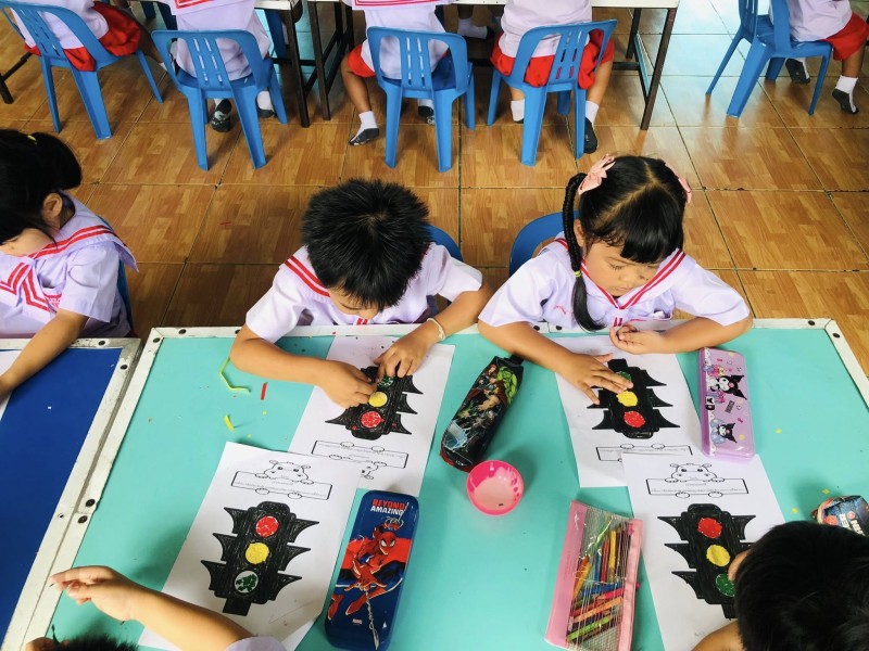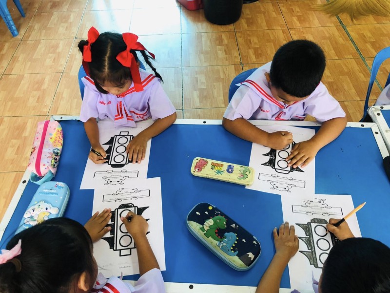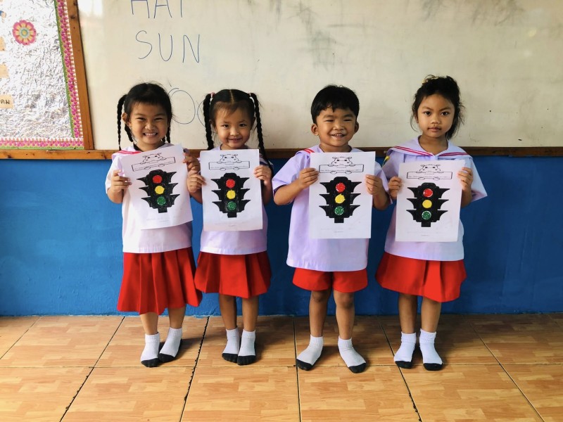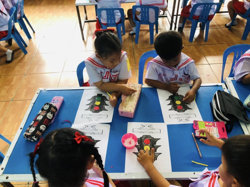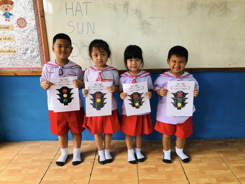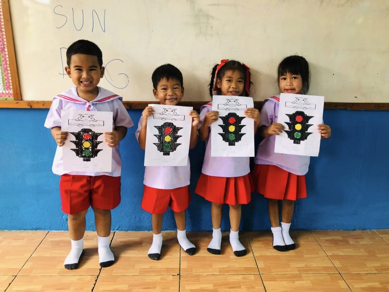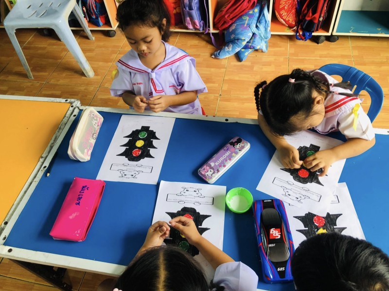 21 กรกฎาคม 68 กิจกรรมศิลปะสร้างสรรค์ ฉีกตัดปะ สัญญาณไฟจราจร (อนุบาล 2/1)