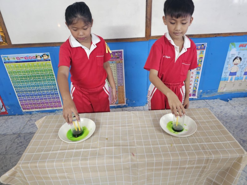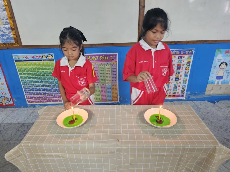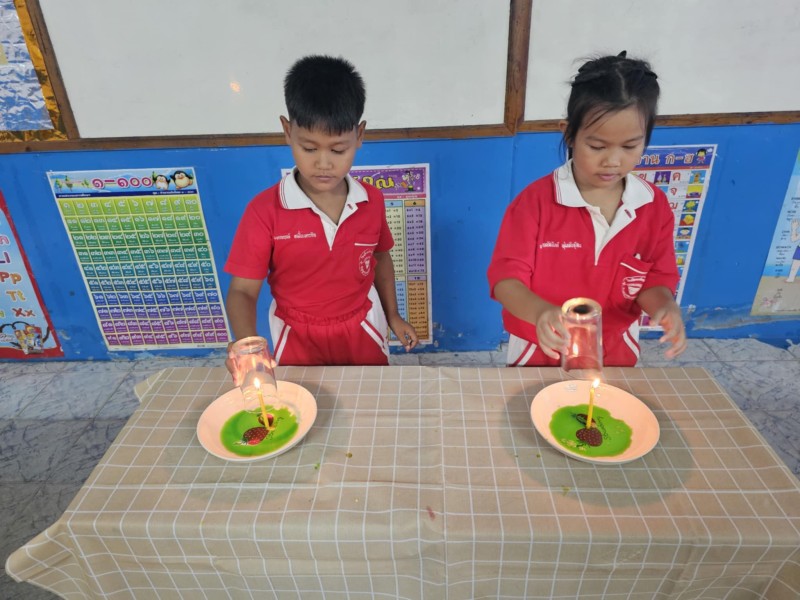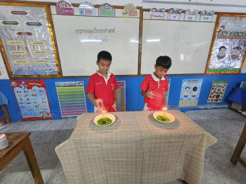 22 กรกฎาคม 68 การทดลองเทียนไขดูดน้ำ (ประถมศึกษาปีที่ 3/2)